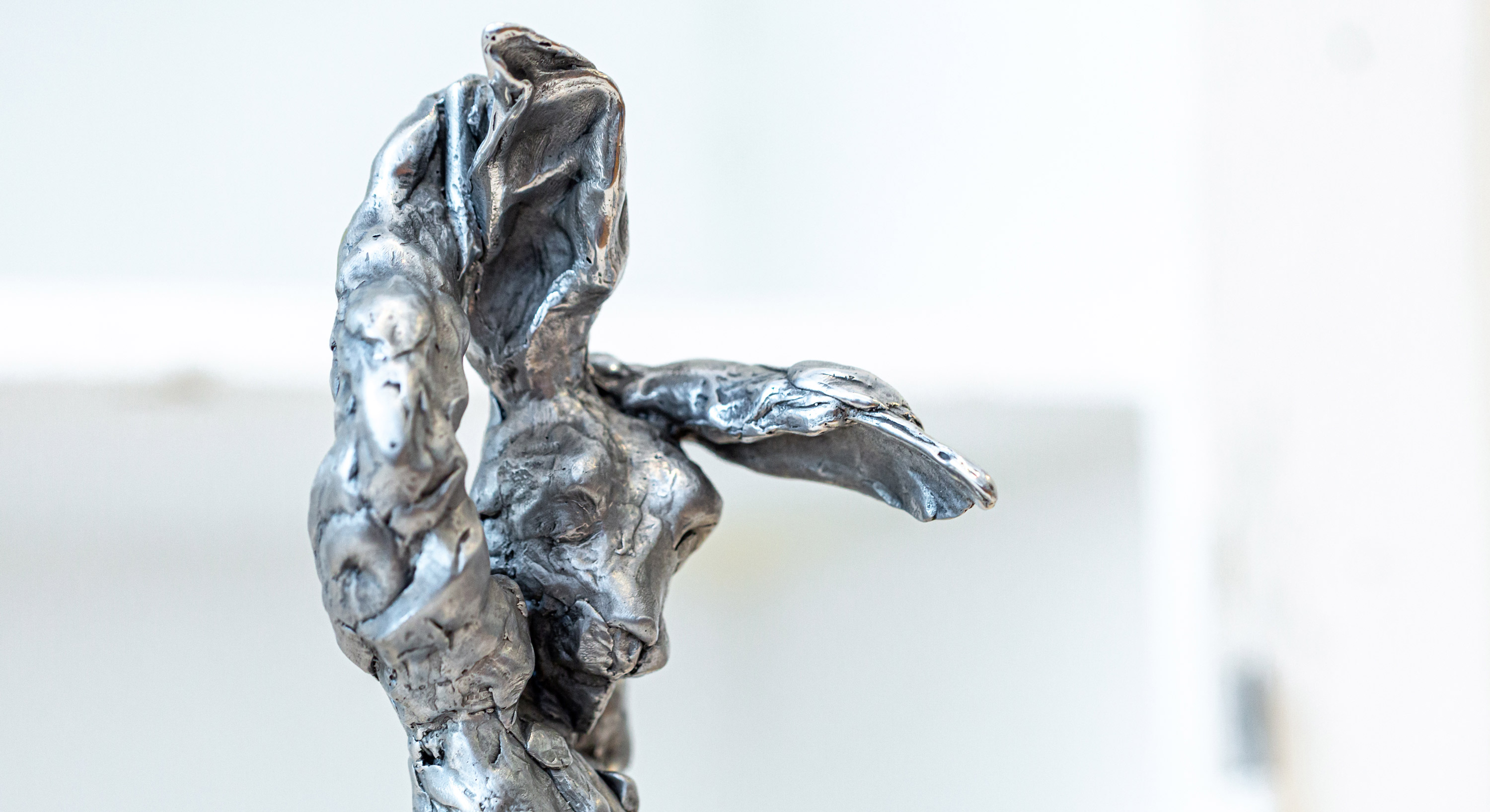 Ich zeige neben der Werkreihe POWER TUSSLE erstmalig Aluminiumgüsse und neue Skulpturen aus Wachs, zudem graphische Arbeiten.